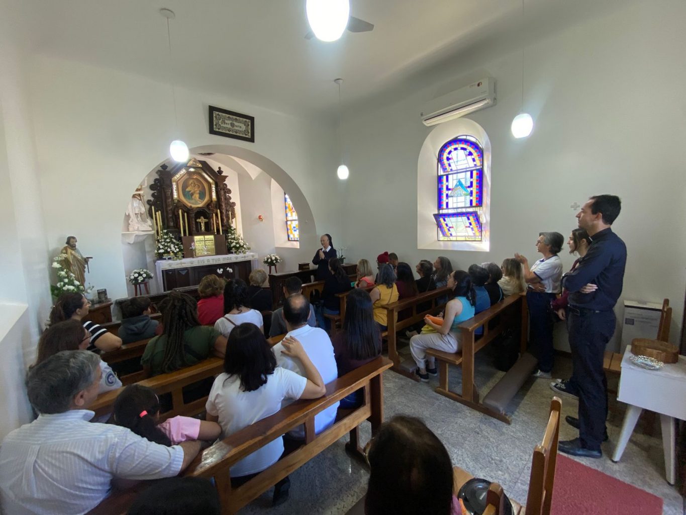 Em seguida, foi celebrada a Santa Missa, presidida pelo padre Kleber, com a liturgia própria de Maria, Mãe da Santa Esperança. A celebração foi marcada por espiritualidade e profunda reverência.